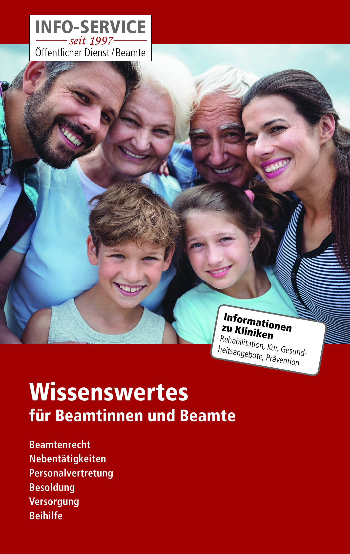 Der INFO-SERVICE Öffentlkicher Dienst/Beamte publiziert seit 1997 - also seit fast 30 Jahren - über die wichtigsten Themen zu den Einkommensbedingungen und Arbeitsbedingungen. Insgesamt hat der INFO-SERVICE zehn Ratgeber bzw. eBook zur Verfügung. Jedes Buch bzw. eBook wird einmal jährlich aktualisiert. Daneben gibt der INFO-SERVICE in unregelmäßigen einen Newsletter in Print heraus, in digitaler Form wird ein INFO-DIENST herausgegeben, den bisher schon 150.000 Frauen und Männder abonniert haben.